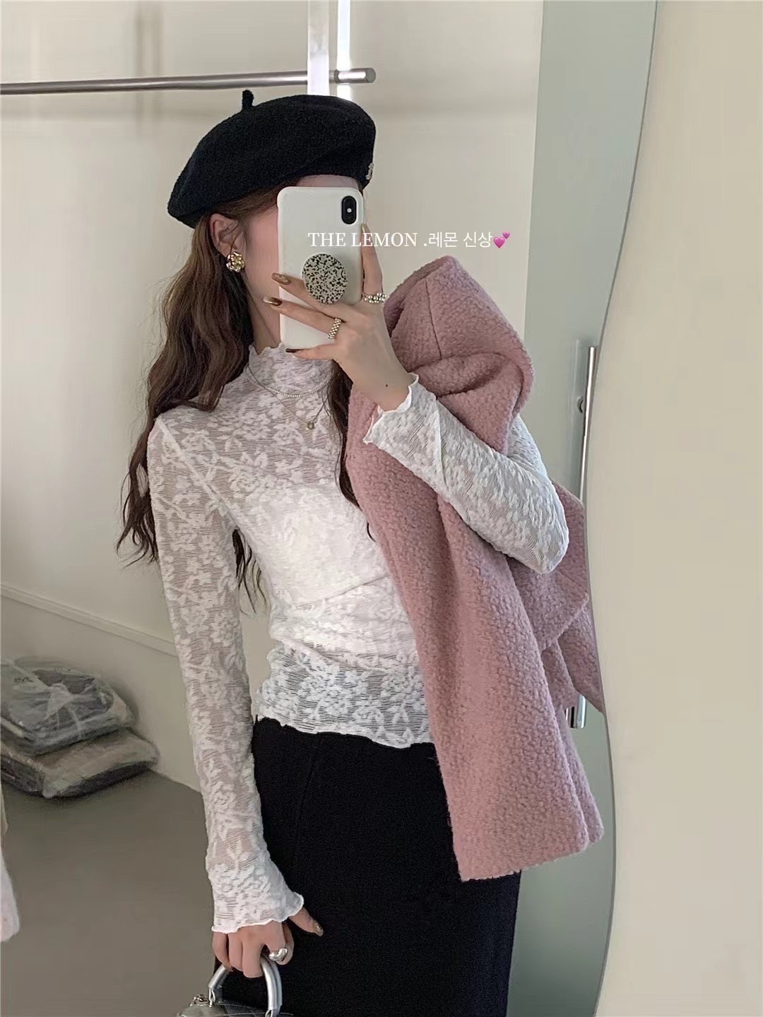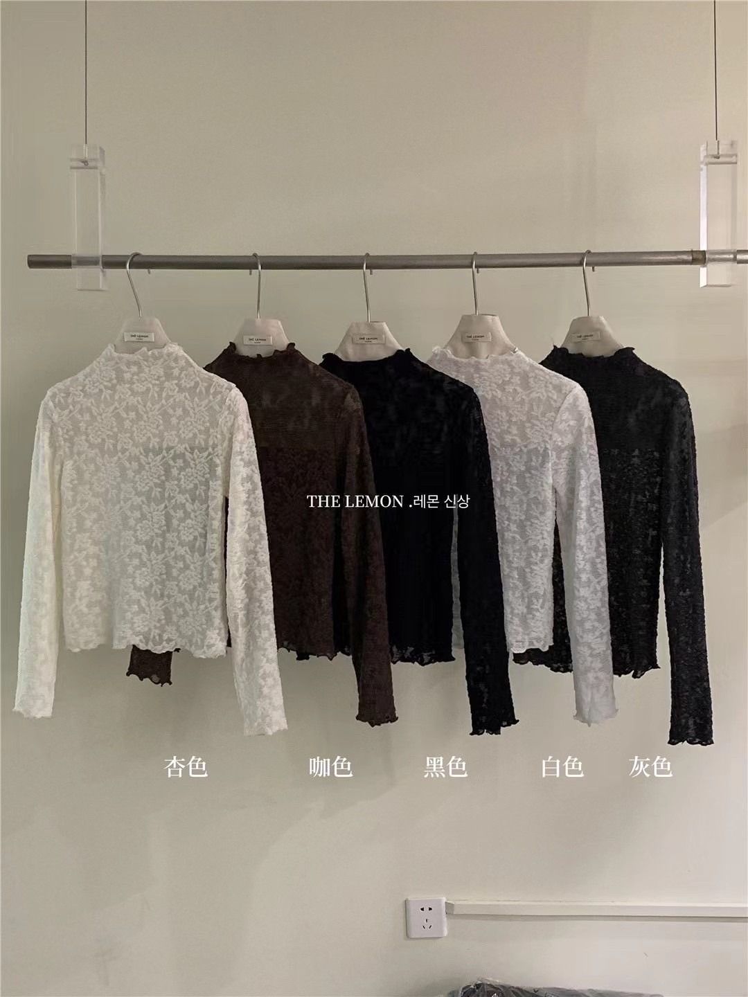 THE LEMON甜美木耳邊半高領蕾絲彈性內搭長袖上衣 | 春秋