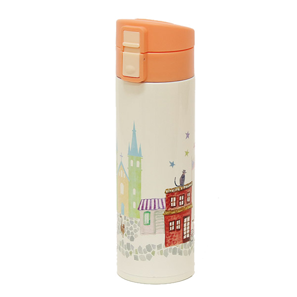 -這是一款直飲不鏽鋼馬克杯瓶,設計溫柔可愛,蓬鬆的印花像水彩畫一樣。